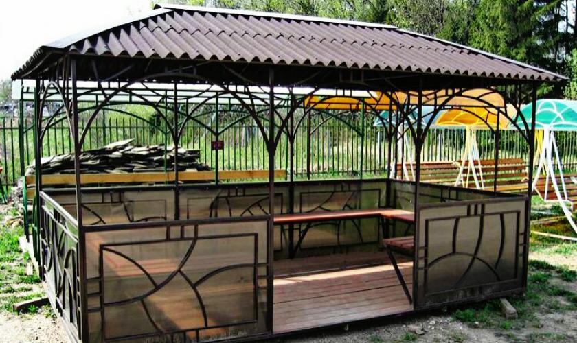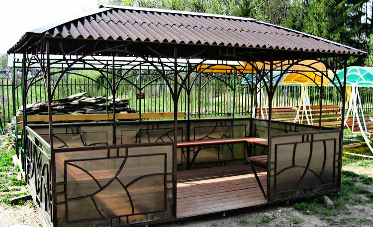 | 3,0 х 5,0 м (Возможны изменения размера и цвета) | Металлическая беседка с элементами ковки, пол, лавочки деревянные. Кровля на выбор заказчика. | От города бронницы - 50 руб./км. | До 2-х недель | 525 000 руб. |