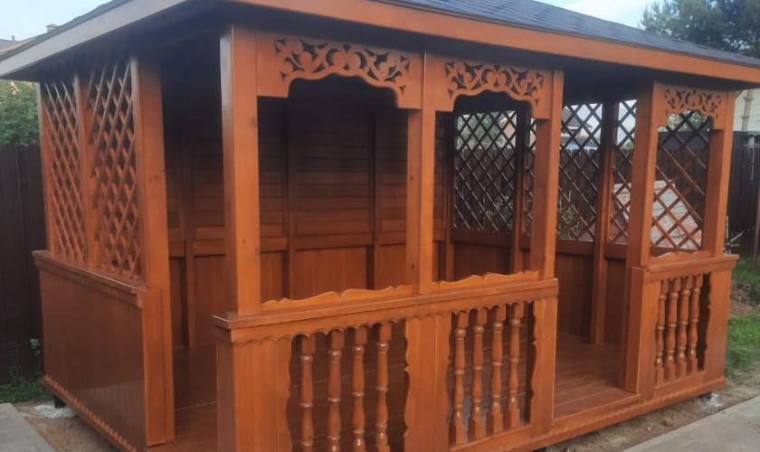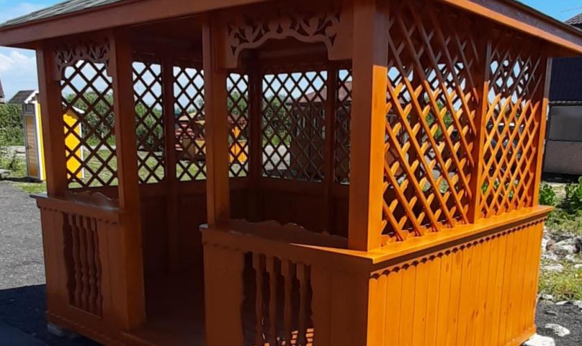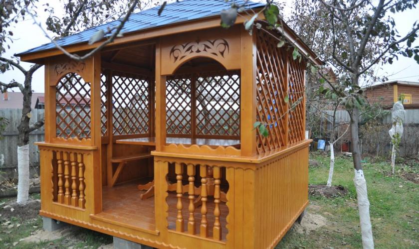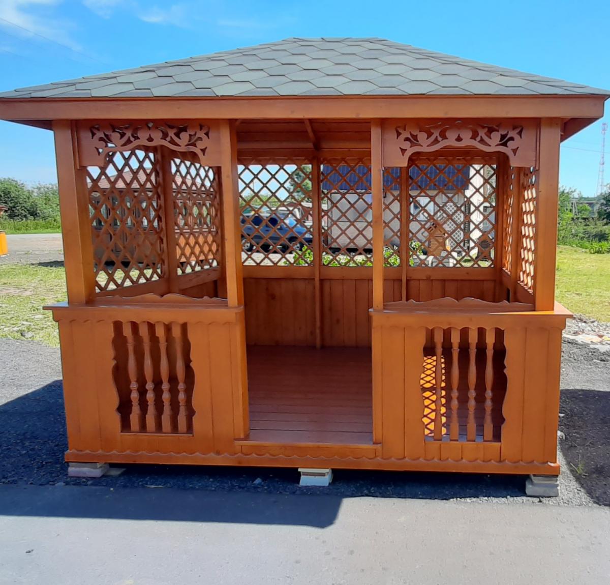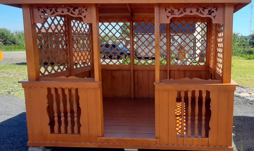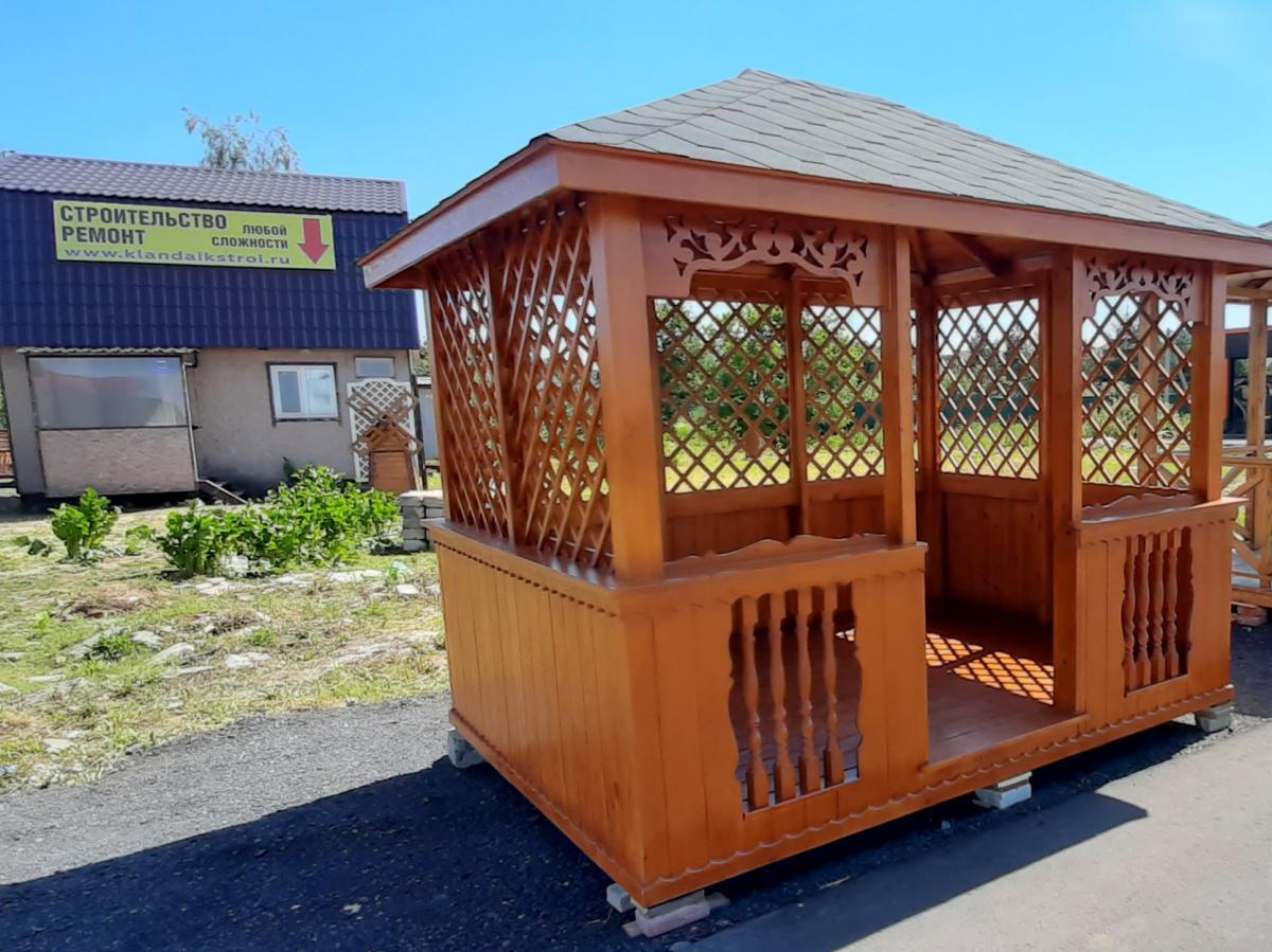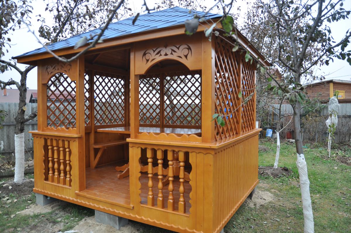 | В стоимость входит | Кровля: гибкая черепица (цвет - на выбор), несъемные лавочки в цвет беседки, прямоугольный стол, фундаментные блоки. |