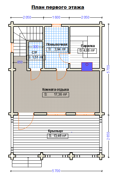 | Высота потолков | 2300 мм. Парная 2150 мм |
